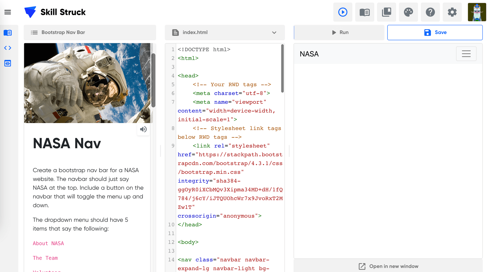 Students learn how to leverage bootstrap in order to build a navigation bar on their website.