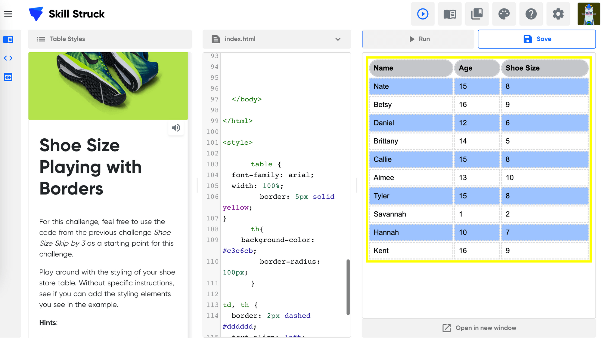 Students learn how to style their tables to make them look professional.